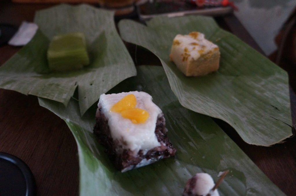 デザートはバナナの葉に包まれてて、それを止めてるを爪楊枝のようなもので切っていただきました。